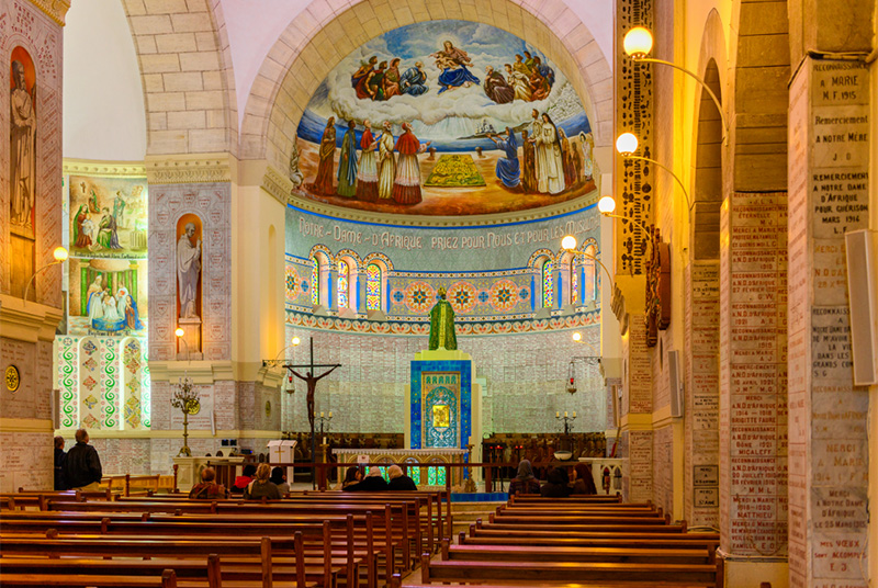 Строительство прекрасной неовизантийской базилики по проекту архитектора Жана-Эжена Фромажо было завершено только в 1872 году. С 1930 года её окормляют Белые отцы.