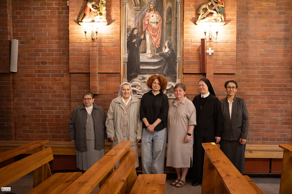 Сестра Татьяна, MSC: Действительно, это наш второй опыт. В июне 2025 года, во время Юбилейного года надежды и юбилейной 350-ой годовщины явлений Святейшего Сердца Иисуса святой Маргарите Марии Алакок, в Новосибирске был освящён образ, посвященный Святейшему Сердцу. Поскольку я состою в конгрегации сестёр-миссионерок Святейшего Сердца Иисуса и, по случаю юбилейных торжеств была на аудиенции с Папой, получилось так, что за несколько минут разговора с Папой Франциском, он, узнав, что в нашем соборе ещё нет образа Святейшего Сердца, просто сказал: «Сделайте это вы». Такое было начало. После этого было получено благословение от ординария епархии епископа Иосифа Верта. От центра «Иниго» отец Янез Север, SJ тоже оказал поддержку, и мы с Линой Владимировной Городецкой, отвечающей в духовном центре «Иниго» за культурные проекты, начали поиск художника с пониманием, какой образ должен быть в нашем соборе. Провидение помогло, и художник был найден.