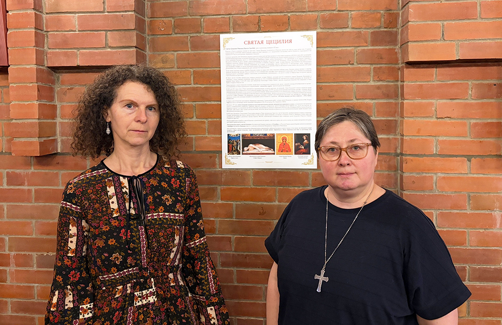 Лина Городецкая: Выбор образа святой Цецилии неслучаен. В июле 2023 года в Кафедральном соборе появился духовой орган Диего Сера опус 40, в октябре того же года состоялось его освящение, и мы вышли на новый уровень проведения концертов в соборе, особенностью которых является репертуар духовной музыки. У нас уже был многолетний опыт проведения концертов и сотрудничество с преподавателями и студентами Новосибирской Государственной Консерватории имени М.И. Глинки. Во время совместных научно-просветительских проектов неоднократно происходило обращение к образу этой святой, например, через Цецилианское движение или же Общество музыкантов Святой Цецилии в Риме, которое было устроено по типу профсоюза музыкантов. Узнавая всё больше о почитании святой Цецилии, о её образах и музыкальных произведениях, посвящённых покровительнице музыки, мы поняли, что хотим вверить её заступничеству литургическую и музыкальную жизнь Католической Церкви в России, в частности, в нашей Преображенской епархии.