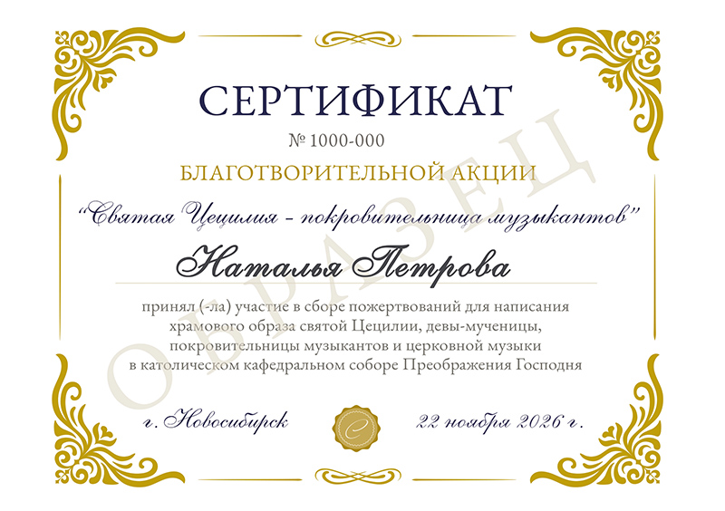 Пример именного сертификата для жертвователей