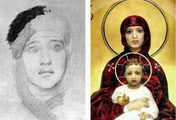 Любовь к Эмилии Праховой была для Врубеля настоящей одержимостью. В то же время он работал над росписями Кирилловской церкви. В отличие от многих своих собратьев по кисти, он был совсем не религиозен. Его верой было искусство. Он писал Христа и испытывал скованность и даже раздражение при столкновении с религией. В этом художник был очень непохож на своего отца Александра Михайловича Врубеля.