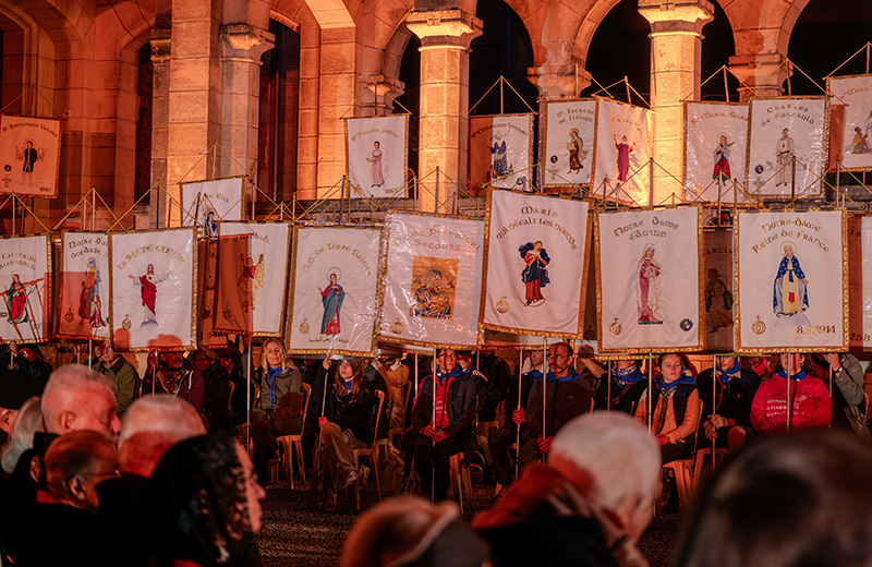 Паломничество также включало торжественную процессию с 80 знамёнами святых Франции, что стало ярким напоминанием о том, что вера нации поддерживается свидетельством бесчисленных святых мужей и жён.