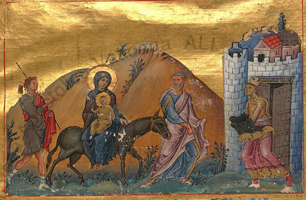 23.-Бегство-в-Египет.-X-в.-Миниатюра.-Минологий-Василия-II.-Vat.-gr.-1613.-P.-274