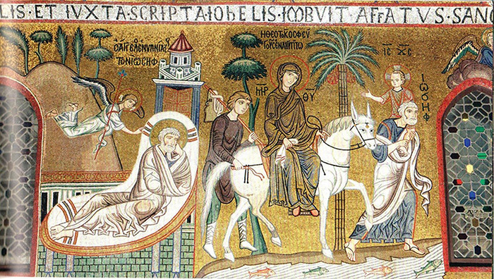 37.-Сон-Иосифа.-Бегство-в-Египет.-1143-1150.-Мозаика.-Палатинская-капелла-Палермо-2