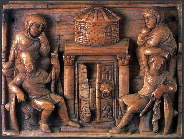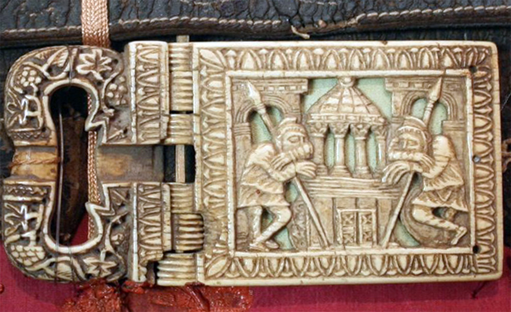 Еще большим лаконизмом отличается сцена, изображенная на пряжке пояса епископа Цезария Арелатского начала VI века (Слоновая кость, резьба. Музей античного Арля, Франция). Гроб Господень в виде храма и два спящих стражника по сторонам от него –иероглифичный образ сокровенной тайны Воскресения. Сон стражников воспринимается как символ непостижимости величайшего события.