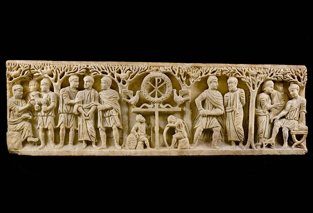 На рельефе реликвария из Британского музея (420–430 гг.) за приоткрытой дверью гробницы, рядом с которой сидят спящие стражники и погруженные в раздумье жены-мироносицы, можно разглядеть пустой саркофаг. Вся сцена пронизана невозмутимым спокойствием. Строго симметричная композиция, центром которой является пустой Гроб Господень, в символической форме воплощает Воскресение Спасителя.