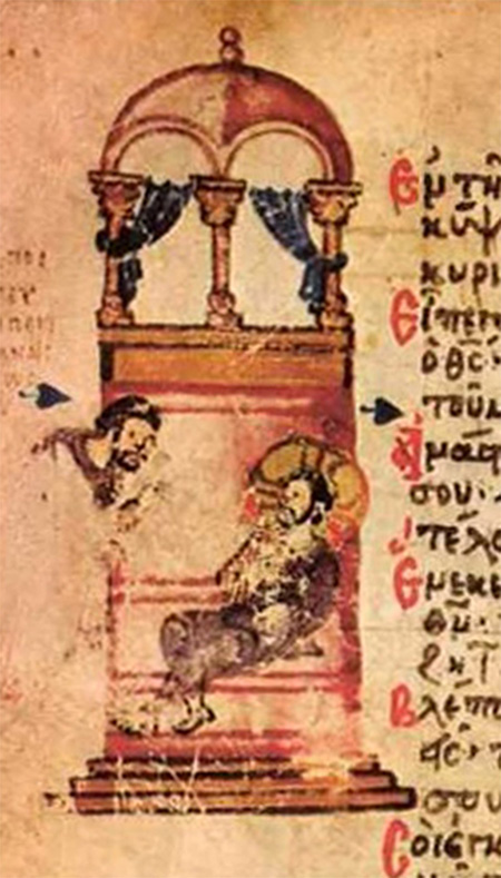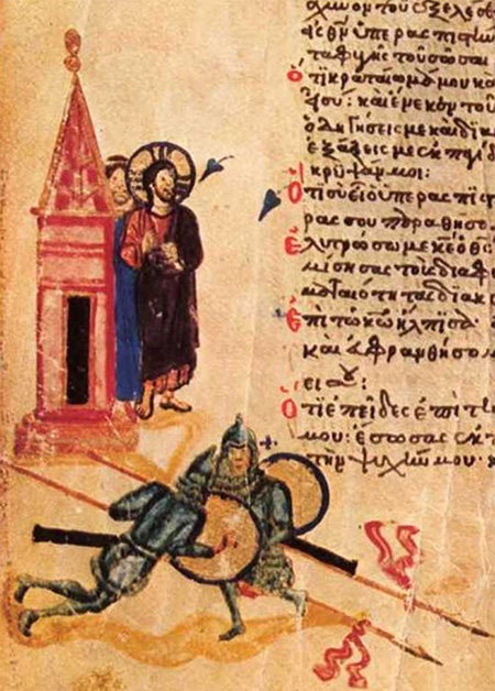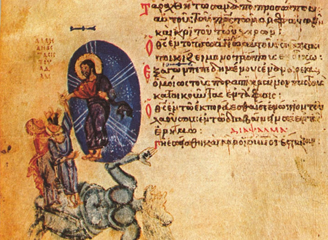 [44] Византийская рукопись, созданная в константинопольском Студийском монастыре около 850 г., получила название Хлудовской Псалтири по фамилии собирателя рукописей, московского предпринимателя А. И. Хлудова (1818–1882).