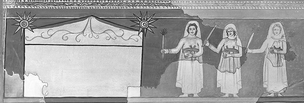 [14] Об изображенной сцене процессии жен-мироносиц в баптистерии Дура-Европос см.: Pergola A. La discussa scena delle donne al Sepolcro nel battistero di Dura Europos. Alle origini dell’iconografia della resurrezione di Cristo // Rivista di Archeologia cristiana, 2010 (86). P. 315–352.