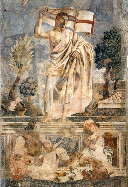 Знаменитая фреска итальянского художника Пьеро делла Франческа (1420–1492) (Пьеро делла Франческа. Воскресение. 1460. Фреска. Пинакотека, Сансеполькро) считается одним из самых ярких символов Воскресения.
