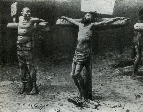 Художник в экспрессивной манере доводит ощущение страданий до наивысшего предела. Глядя на «Распятия» Ге торжество Воскресения может показаться невозможным. Переступая порог эстетически допустимого, натуралистически демонстрируя поверженную плоть умирающего на кресте Сына Божьего, Николай Ге, на самом деле, взывает к совести людей, которые своими грехами постоянно распинают Спасителя. «Отчего же люди не приготовляются к смерти, забывают о ней! Если бы они помнили о ней, они жили бы лучше» [51], ‒ говорил он.
