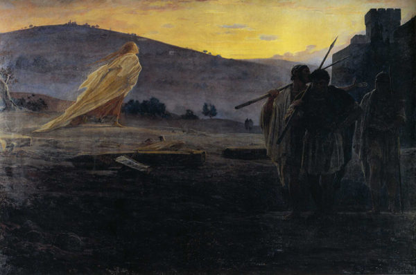 После «Тайной вечери» Ге пишет картину «Вестники Воскресения» (1867, Государственная Третьяковская галерея). И вновь противопоставление света и тьмы наполняется глубоким смыслом.