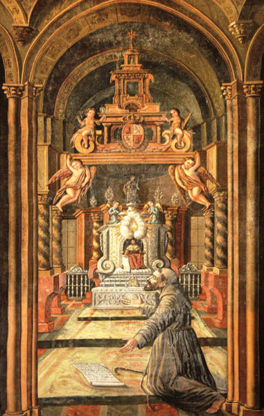 83.-Неизвестный-художник.-Святой-Франциск-перед-алтарем-собора-Святого-Иакова.-XIX-в.-Холст-масло.-Монастырь-Св.-Франциска-Компостела