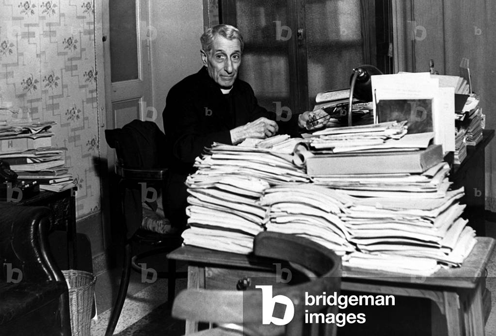 Дон Луиджи Стурцо за рабочим столом. Портрет 50-х гг. Фото: Farabola / Leemage